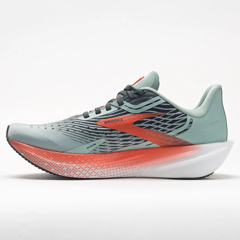 Train at top speed in the Brooks Hyperion Max! this neutral running shoe features a nitrogen-infused DNA FLASH midsole that adapts to your stride. Enjoy fast and effortless transitions as the Rapid Roll technology propels you forward. Ultralight cushioning absorbs impact from your hardest workouts, keeping your legs fresh and ready for another. Protective and responsive, the Brooks Hyperion Max unlocks your racing potential!